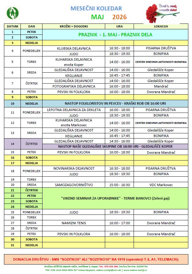• MESEČNI KOLEDAR MAJ 2026
